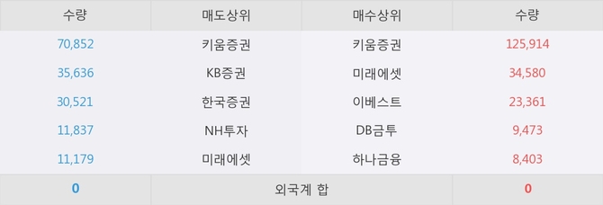 거래원 동향은 미래에셋, 하나금융 등이 매수 상위 목록에 나타나고 있다.