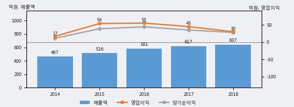 최근 3년간의 실적을 살펴보면 안정적 성장세를 보이고 있다. 최근 3년간 매출로 볼 때 매년 꾸준히 증가하고 있다. 다만 최근에 그 증가폭이 다소 감소하고 있다.