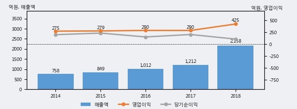 최근 3년간의 실적을 살펴보면 안정적 성장세를 보이고 있다. 최근 3년간 매출로 볼 때 매년 꾸준히 증가하고 있고 그 증가폭도 확대되고 있다.