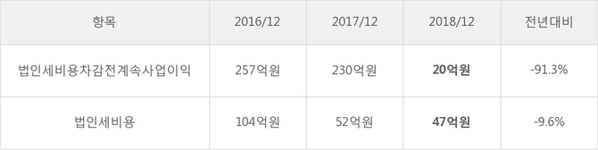 [표]한글과컴퓨터 법인세 납부 추이