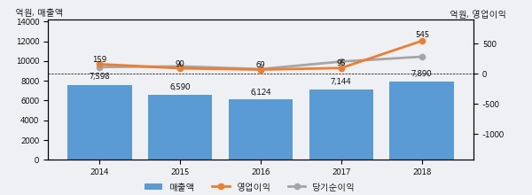 최근 실적을 살펴보면 2018년 매출액이 최근 5년 중 가장 높은 실적을 기록했음을 알 수 있다. 이전 최고 실적이었던 2014년 보다도 3.8%(292억 2천만원) 늘어난 것으로 나타났다.