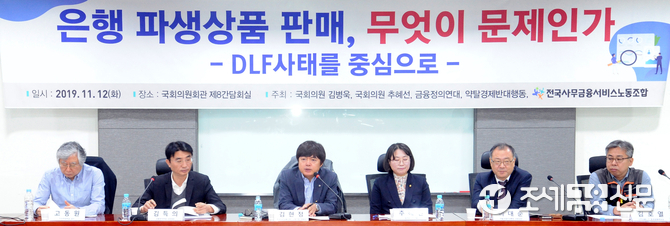 (조세금융신문=김용진 기자) 12일 오전 국회의원회관에서 열린 은행 파생상품 판매 무엇이 문제인가 토론회가 진행 돼고 있다.