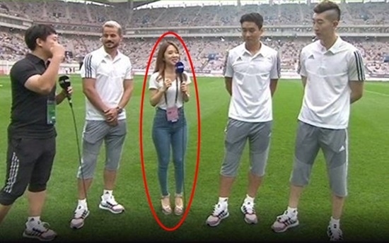 유벤투스 선수와의 인터뷰 때 이 아나운서는 통역을 거치지 않고 영어로 질문을 건네 시청자 기만 논란에 휩싸였다.