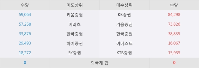 현재 거래원 동향은 KB증권, 키움증권, 한국증권 등이 매수 상위 목록에 나타나고 있다.