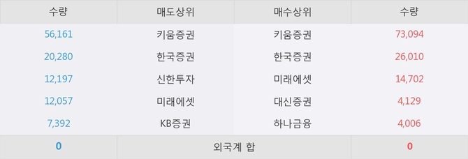 거래원 동향은 미래에셋, 하나금융 등이 매수 상위 목록에 나타나고 있다.