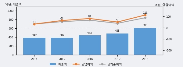 최근 3년간의 실적을 살펴보면 안정적 성장세를 보이고 있다. 최근 3년간 매출로 볼 때 매년 증가하고 있고 그 증가폭도 확대되고 있다.