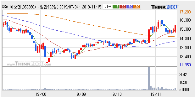 차트상 주가의 흐름은 현재 단기·중기 이평선이 정배열 상태로 전형적인 상승세를 보이고 있다. 이 종목의 차트에서 최근에 최근 60일 매물대 돌파, 주가 5MA 상향돌파 등을 확인할 수 있다