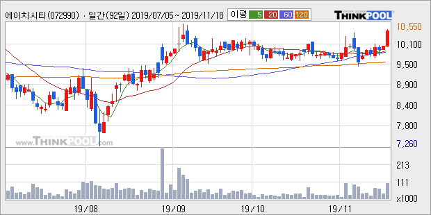 에이치시티의 2018년 매출액은 364억으로 전년대비 30.7% 상승했고, 영업이익 또한 43억으로 전년대비 1,042.1% 상승했다. 이 회사의 매출액 증감률과 영업이익 증감률은 각각 코스닥 상위 16%, 상위 2%에 해당된다.