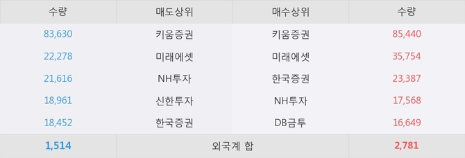 거래원 동향은 미래에셋, NH투자 등이 매수 상위 목록에 나타나고 있다.