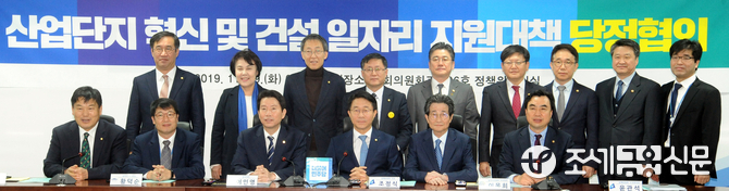 (조세금융신문=김용진 기자) 이인영 더불어민주당 원내대표가 19일 오전 국회 의원회관에서 열린 산업단지 혁신 및 건설 일자리 지원대책 당정협의에 앞서 참석자들과 기념 촬영을 하고 있다.
