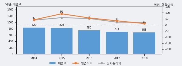 최근 3년간의 실적을 살펴보면, 매출액은 3년 연속 하락하고 있으나 그 하락폭은 줄어들고 있음을 알 수 있다.