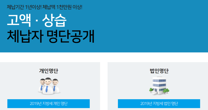 행정안전부와 지자체는 매년 올해 1월 1일 기준 1000만원 이상 지방세 등을 1년 이상 체납한 개인·법인의 이름, 나이, 직업, 주소, 체납액 세목 등을 공개하고 있다.