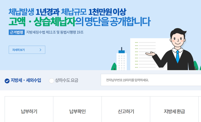 공개 대상은 올해 1월 1일 기준 체납 발생일로부터 1년이 지난 1000만원 이상 지방세와 지방세외수입금 체납자들로 법인이 체납한 경우에는 법인 대표자도 함께 공개된다.