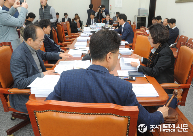 (조세금융신문=김용진 기자) 김정우 기획재정위원회 조세 소위 위원장이 25일 오전 국회에서 열린 조세 소위에서 의사봉을 두드리고 있다.