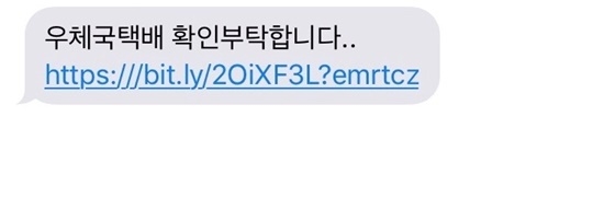 (조세금융신문=김효진 기자) '우체국택배 확인부탁합니다'라는 내용의 스미싱 문자가 확산되고 있는 것으로 전해졌다.