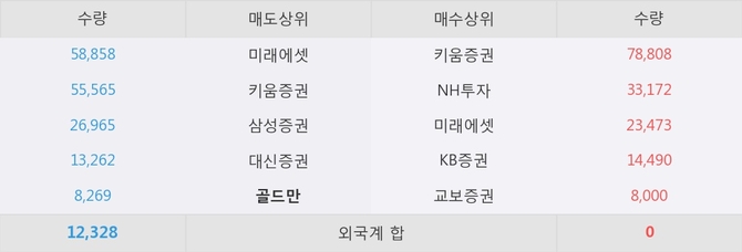 거래원 동향은 NH투자, 미래에셋 등이 매수 상위 목록에 나타나고 있다. 한편, 매도 창구 상위에는 골드만이 눈에 띄고 있다.