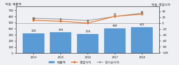 최근 실적을 살펴보면 2018년 매출액이 최근 5년 중 가장 높은 실적을 기록했음을 알 수 있다. 이전 최고 실적이었던 2017년 보다도 3.9%(16억 1천만원) 늘어난 것으로 나타났다.