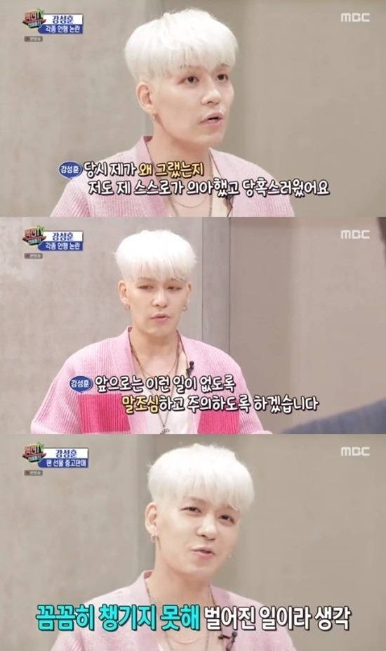 강성훈은 5일 방송된 MBC '섹션TV 연예통신'에서 일방적인 팬미팅 취소, 막말 논란 등을 언급하며 "제 자신이 저주스럽고 실망스러웠다"며 "당시 제가 왜 그랬는지 의아하고 당혹스러웠다. 입이 열 개라도 할말이 없다"고 말했다.