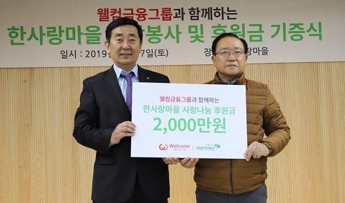 (조세금융신문=곽호성 기자) 웰컴금융그룹이 지난 7일 경기도 광주에 있는 중증장애인요양시설인 한사랑마을에 후원금 2000만원을 전했다고 9일 밝혔다.