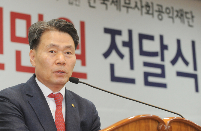 (조세금융신문=김용진 기자) 정구정 한국세무사회 공익재단 이사장이 12일 오후 한국세무사회관에서 열린 한국세무사회 공익재단 2019년 생활비및 장학금 전달식에서 인사말을 하고 있다.