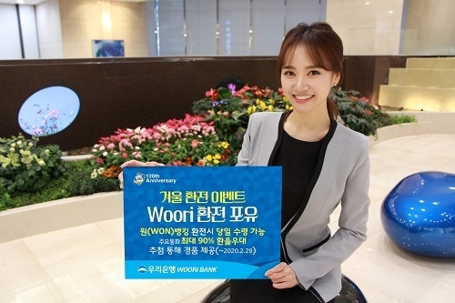 (조세금융신문=곽호성 기자) 우리은행은 겨울철을 맞아 환율우대와 경품을 증정하는 Woori 환전 포유(for you)이벤트를 내년 2월 29일까지 연다고 15일 밝혔다.