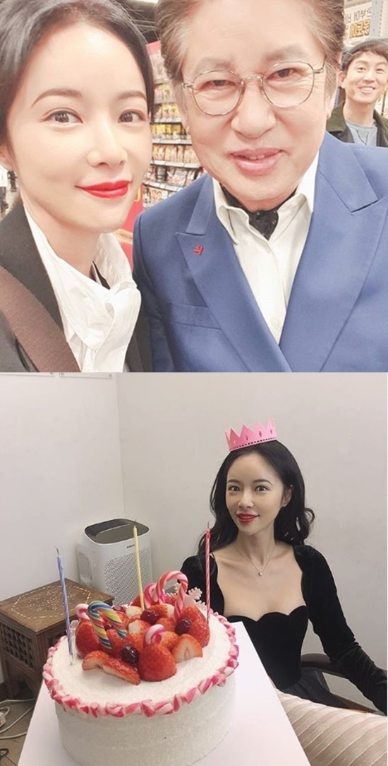 공개된 사진 속 황정음은 연말 분위기가 물씬 풍기는 검은색 드레스를 입고 있는가 하면 같은 작품에 출연하는 대선배 김용건과 다정한 모습을 연출하고 있다.