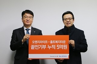 (조세금융신문=방영석 기자) 오렌지라이프생명은 30일 사내 후원활동으로 모금한 ‘임직원 끝전기부금’을 중증장애인 복지기관인 홀트복지타운에 전달했다고 밝혔다. 이로써 2009년 첫 시작된 끝전기부금 후원은 5억원을 넘어섰다.