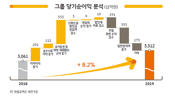 KB금융 관계자는 “2019년에는 성장성 둔화와 예대마진 축소에 따른 수익성 악화 우려가 꾸준히 제기되었으나, KB금융그룹은 건전성과 수익성 중심의 경영을 최우선 목표로 두고, 우량대출 위주의 질적성장과 순이자마진 관리, 비이자이익 부문 실적 개선에 주력한 결과 매우 견조한 이익체력을 유지했다”고 말했다.