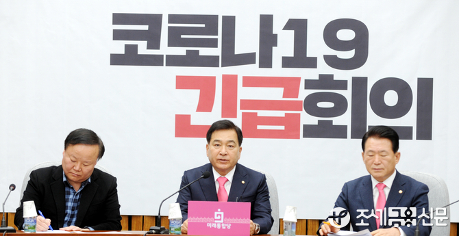 (조세금융신문=김용진 기자) 심재철 미래통합당 원내대표가 21일 오전 국회에서 열린 코로나 19긴급회의에서 모두 발언을 하고 있다.