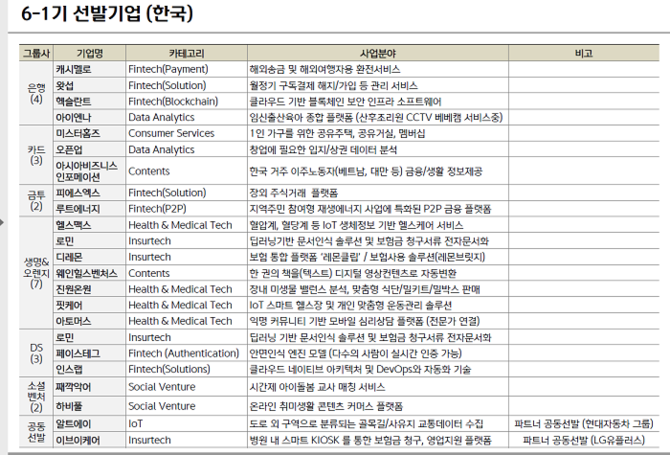 이번 6기 모집에는 800여개의 스타트업이 지원했다. 신한금융은 국내 부문 22개사, 글로벌 진출부문 14개사를 최종 선발했다. 또 올해부터 연간 1회였던 스타트업 선발을 상‧하반기로 늘리기로 했다.