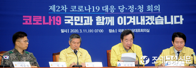 (조세금융신문=김용진 기자) 이낙연 더민주 코로나19 재난안전대책위원장이 11일 오전 국회에서 열린 제2차 코로나19대응 당정청회의에서 발언을 하고 있다.