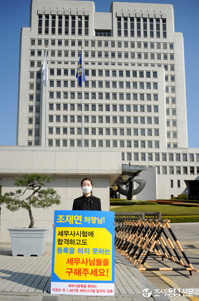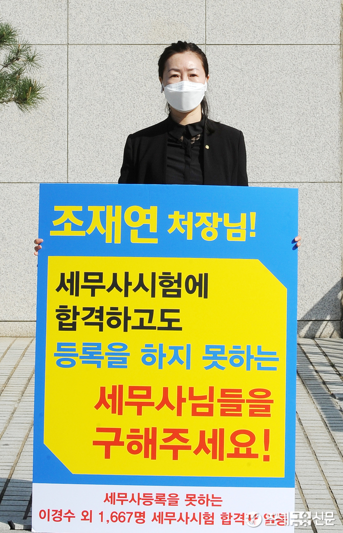 [포토뉴스]1인 시위 하는 배미영 한국세무사고시회 상임이사