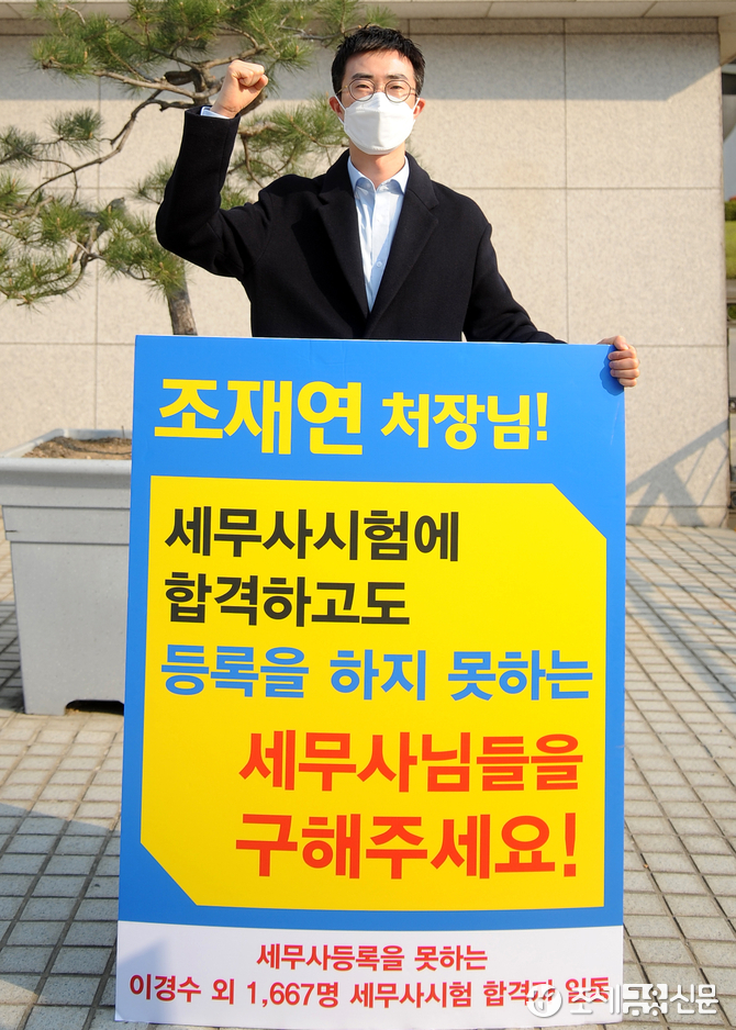 [포토뉴스]1인 시위 하는 제56기 김종만 세무사 시험 합격자