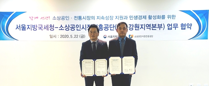 서울국세청(청장 김명준)은 지난 22일 소진공 서울강원지역본부(본부장 최선일)와 소상공인・전통시장 상인에 대한 세정지원 업무협약을 체결했다고 25일 밝혔다.