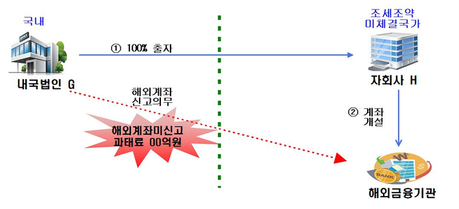 국세청은 자체 정보수집 자료 등을 분석하여 G사의 혐의를 포착, 사후검증을 통해 수억원의 해외금융계좌 미신고 과태료를 부과하고 형사고발했다.