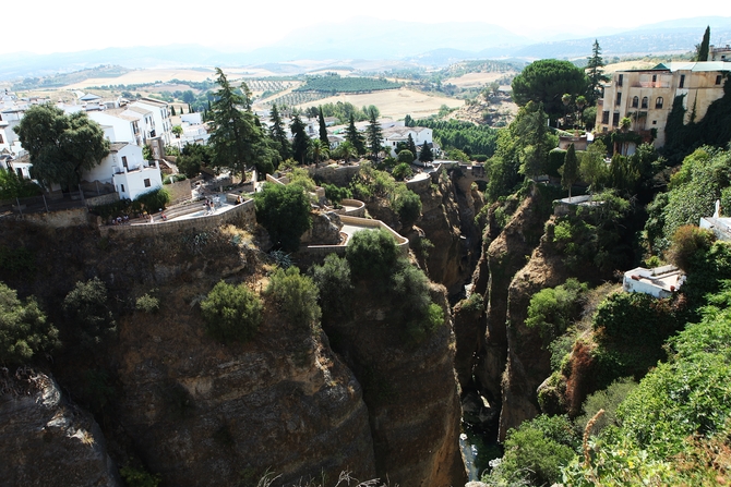 헤밍웨이 산책로에서 보이는 누에보다리 풍경은 천혜의 자연과 인간이 만든 인위적인 구조물이 완벽하게 어우러져 극치를 이룬다. 어디 그뿐인가. 다리 위에서 사방으로 펼쳐지는 풍경 역시 압권이다. 계곡 언덕을 따라 그림처럼 밀집된 하얀 집들과 그 너머로 켜켜이 펼쳐지는 산 능선 역시 어우러짐이 아름답기 그지없다.