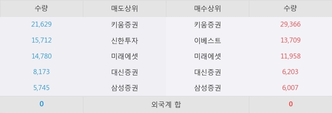 아직까지 외국계 증권사 창구를 통한 매매는 발생하지 않고 있다. 그리고 이 시간 이베스트가 매수창구상위에 올라있는 종목은 이 종목 이외에도 신일전자, 동원시스템즈 등이 있다.