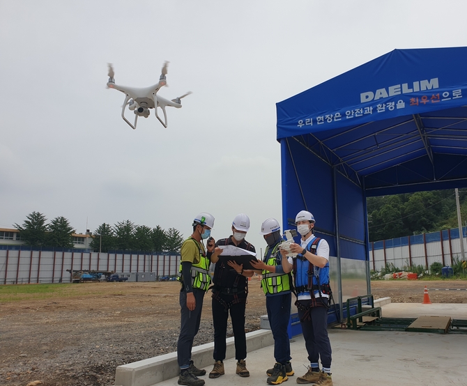 대림산업은 이를 개선하기 위해 드론을 활용해 측량을 실시하고 있다. 드론이 측량한 자료는 대림산업 기술개발원 드론 플랫폼에서 3차원 영상으로 구현돼 다양한 정보와 함께 협력업체에 제공된다.