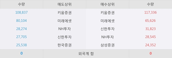 거래원 동향은 미래에셋, NH투자, 삼성증권 등이 매수 상위 목록에 나타나고 있다.