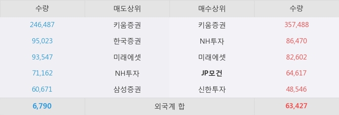 거래원 동향은 JP모건, NH투자, 미래에셋 등이 매수 상위 목록에 나타나고 있다.