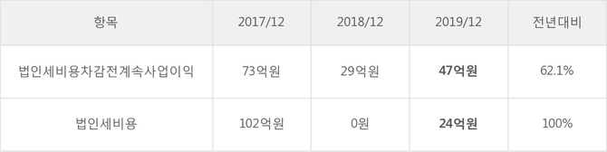 [표]베뉴지 법인세 납부 추이