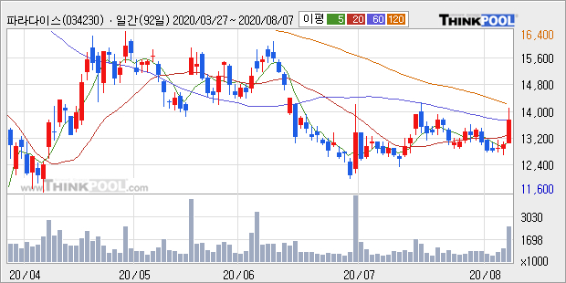 파라다이스의 2019년 매출액은 전년대비 24.4% 늘어난 9794억원이고, 영업이익 또한 전년대비 2,052.3% 늘어난 519억원을 기록했다. 이 회사의 매출액 증감률과 영업이익 증감률은 각각 코스닥 상위 21%, 상위 1%에 해당된다.