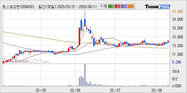포스코강판의 2019년 매출액은 9167억으로 전년대비 -2.5% 하락했고, 영업이익 역시 100억으로 전년대비 -43.8% 하락했다. 이 회사의 매출액 증감률과 영업이익 증감률은 각각 코스피 하위 34%, 하위 23%에 해당된다.