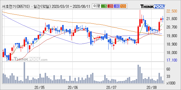 서호전기는 2019년 매출액 649억원과 영업이익 122억원을 기록했다. 전년대비 매출은 108.0%, 영업이익은 87.3% 각각 상승했다. 이 회사의 매출액 증감률과 영업이익 증감률은 각각 코스닥 상위 4%, 상위 20%에 해당된다.