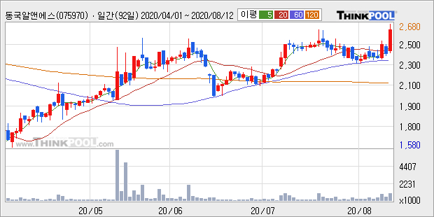 추세선으로 보면 현재 단기·중기 이평선이 정배열 상태로 전형적인 상승세를 보이고 있다. 최근 이 종목의 차트에서 일목균형표 기준선 상향교차(매수), 골든크로스 등의 특이사항이 발생했다.