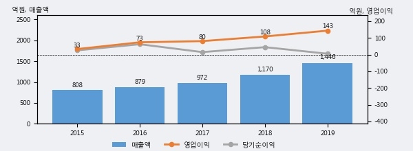 최근 3년간의 실적을 살펴보면 안정적 성장세를 보이고 있다. 최근 3년간 매출로 볼 때 매년 꾸준히 증가하고 있고 그 증가폭도 확대되고 있다.