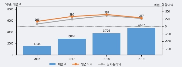 최근 3년간의 실적을 살펴보면 안정적 성장세를 보이고 있다. 최근 3년간 매출로 볼 때 매년 증가하고 있다. 다만 최근에 그 증가폭이 다소 감소하고 있다.