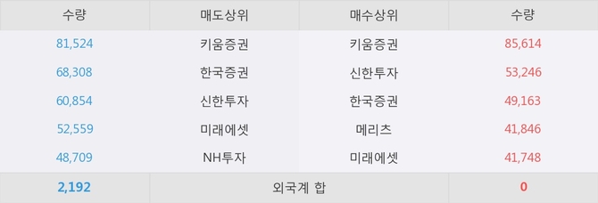 거래원 동향은 메리츠, 미래에셋 등이 매수 상위 목록에 나타나고 있다.