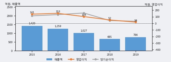 쇼박스는 2019년 매출액 786억원과 영업이익 19억원을 기록했다. 전년대비 매출은 14.8% 상승했고, 영업이익은 -63.0% 하락했다. 이 회사의 매출액 증감률과 영업이익 증감률은 각각 코스닥 상위 32%, 하위 25%에 해당된다.