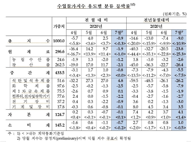 품목별로는 원재료 -1.9%, 중간재 -0.8%, 자본재 -0.1%, 소비재 –0.7%를 각각 기록했다.